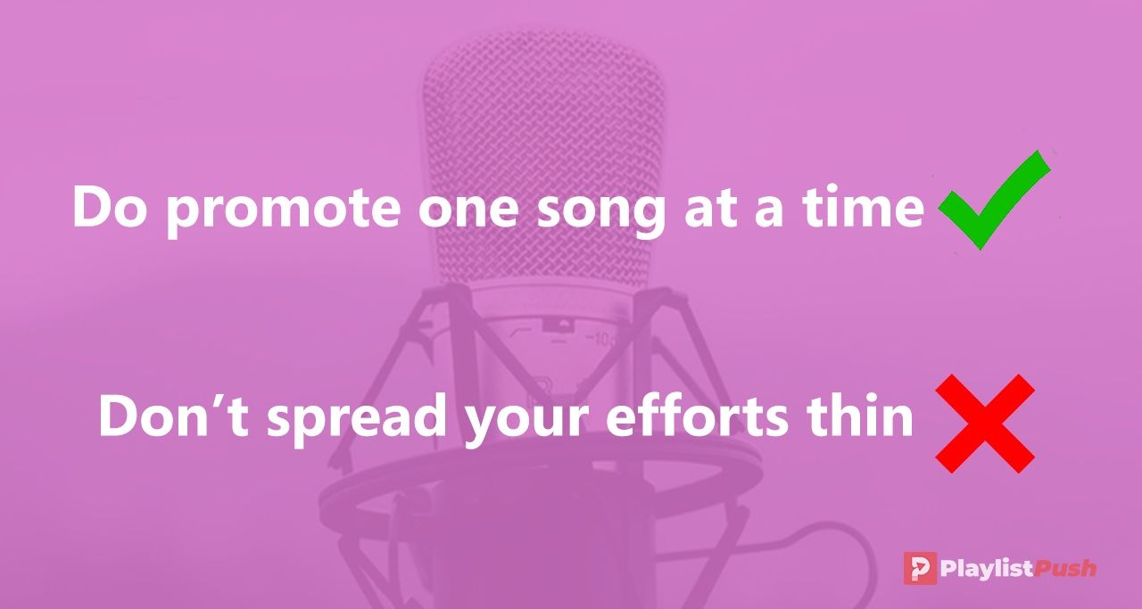 For example if you’re going to use Playlist Push for TikTok promotion, we advise against running two songs for the same artist at the same time. Instead pick one and invest in getting the momentum going behind it.