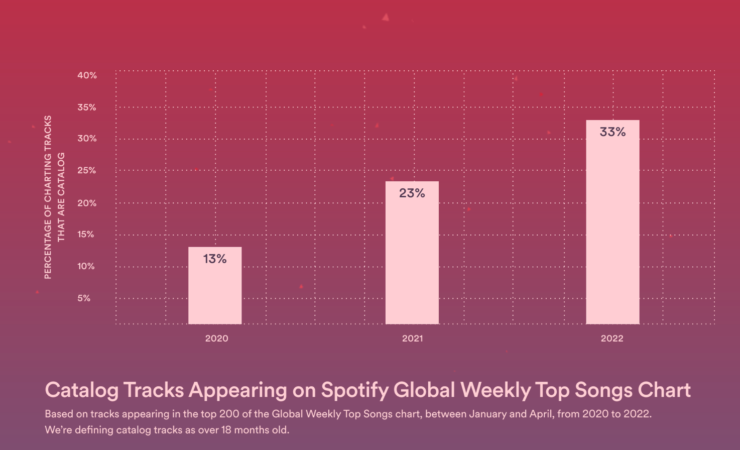 Older releases now make up 33% of the Spotify Global Weekly Top Songs Chart, more than doubling since 2020 (Spotify Fan Study).