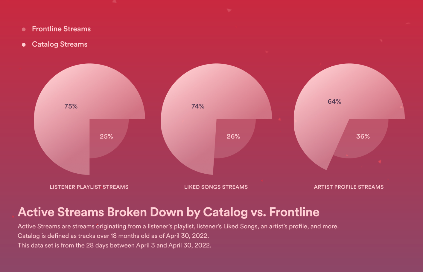 64% of artist profile streams on Spotify are people listening to tracks older than 18 months tracks (Spotify Fan Study).