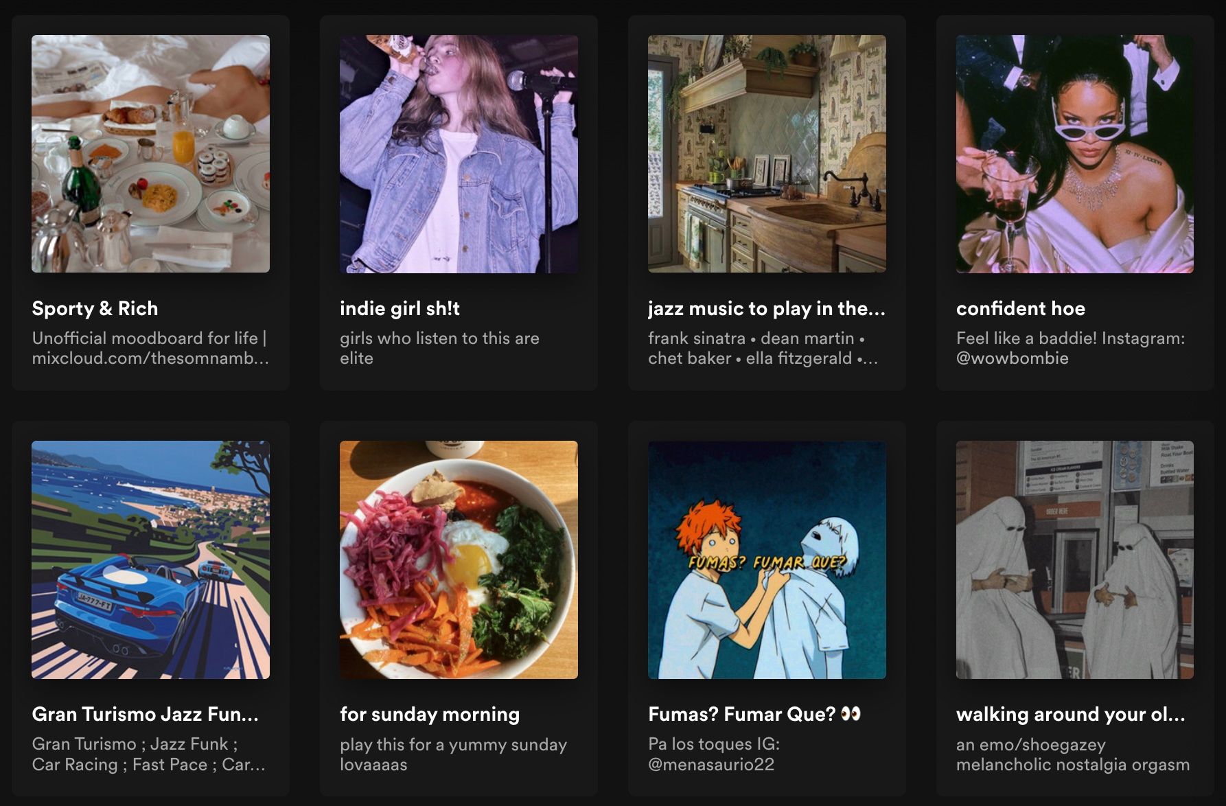 In this example above, an interesting thing this curator did was include a short video unrelated to the playlist itself but in the same vibe as the playlist before showing the playlist itself.