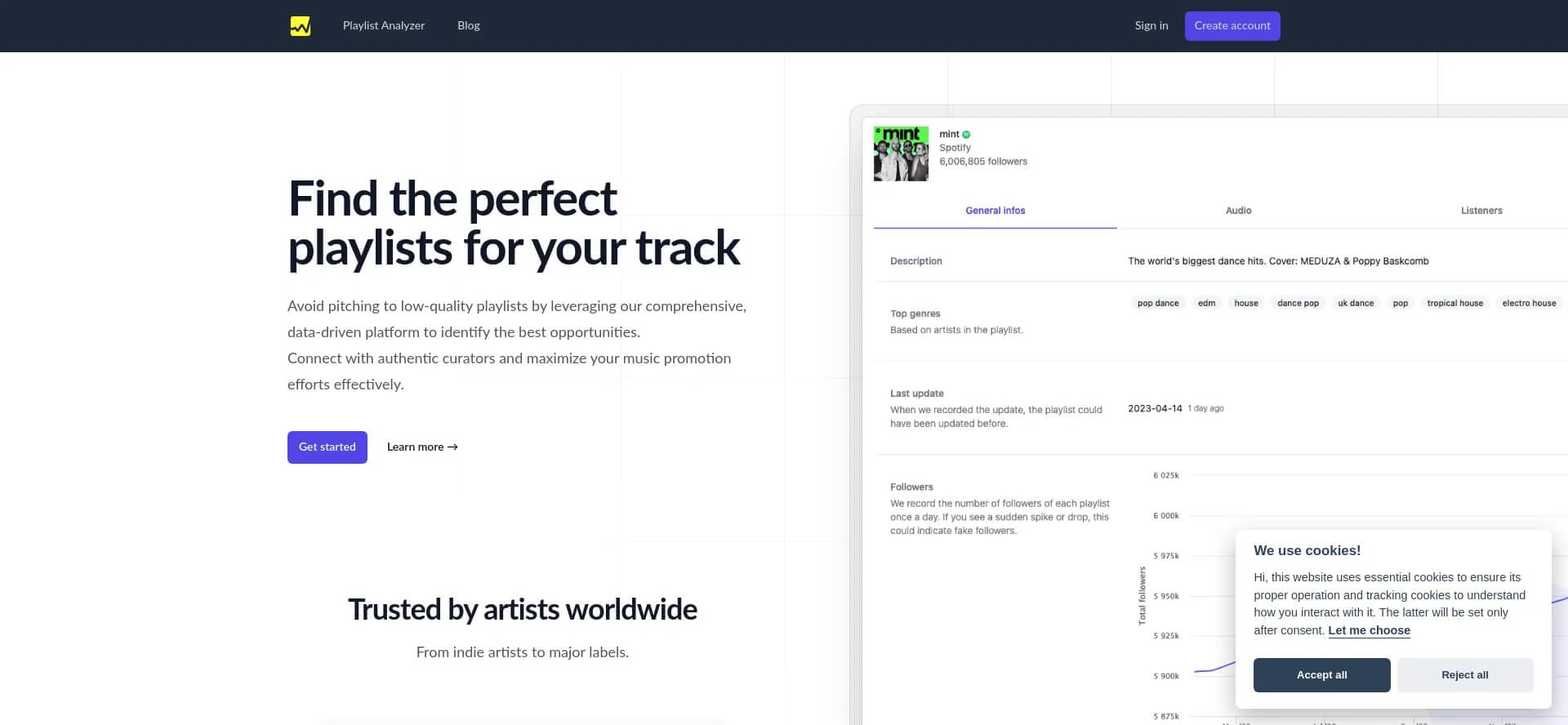 Chartmetric and IsItAGoodPlaylist offer solid insights. Chartmetric provides a full playlist history, while IsItAGoodPlaylist tells you if a playlist is worth pitching to. Both platforms provide extensive playlist follower history, and IsItAGoodPlaylist shows you where the playlist listeners are coming from.